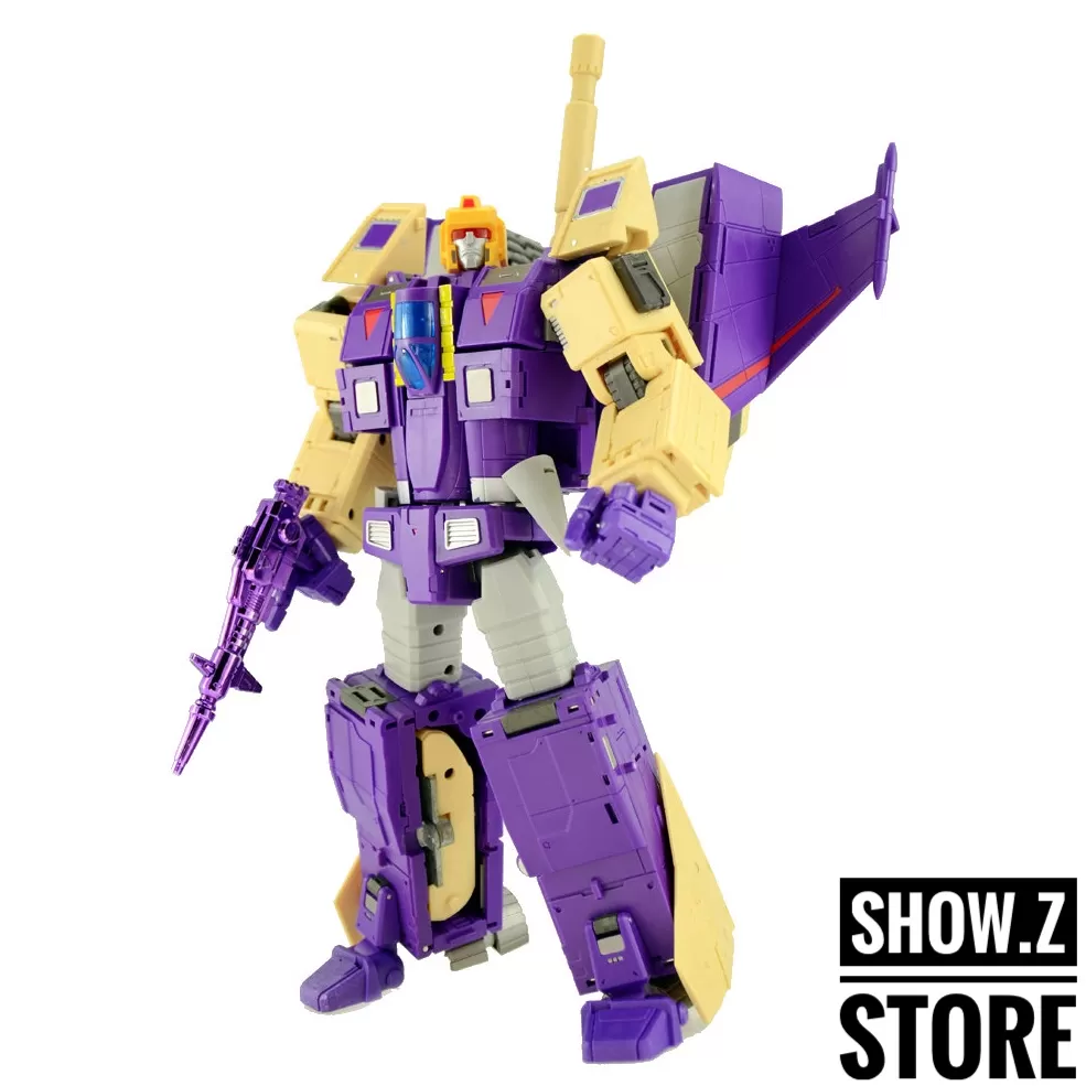 DX9’s Gewalt towers over even MP-10 Optimus (sold separately) and is a Masterpiece scaled triple changer! Stands 24CM/9.45″ tall in robot mode and changes from robot to tank to plane and back and includes weapons as shown.