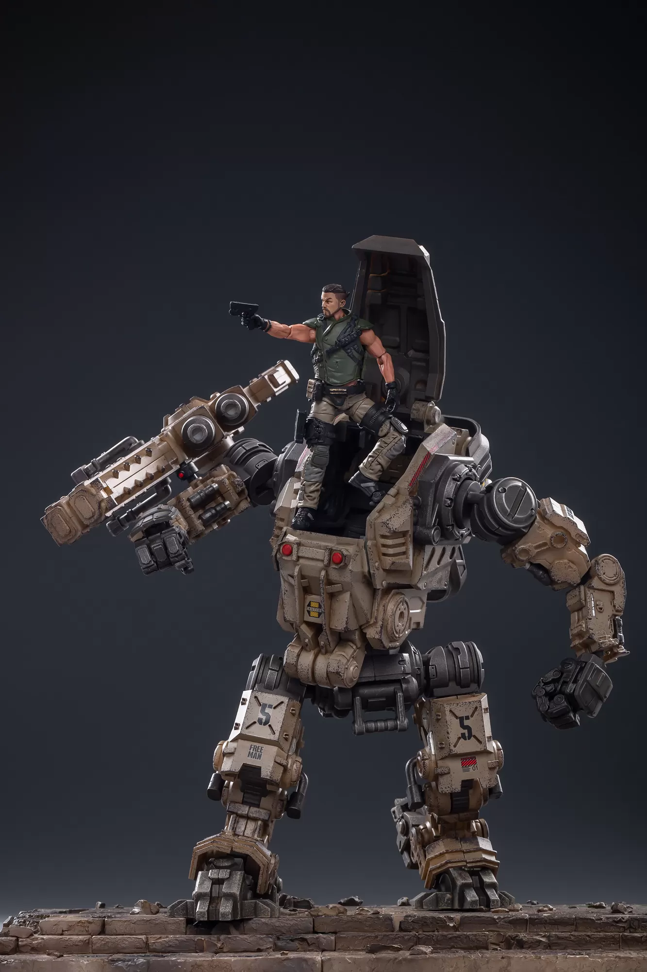 JoyToy Source Acid Rain 1/18 Freeman Machine Armor w/ Pilot Mechas & Soldiers Figure Set Desert Brown Version