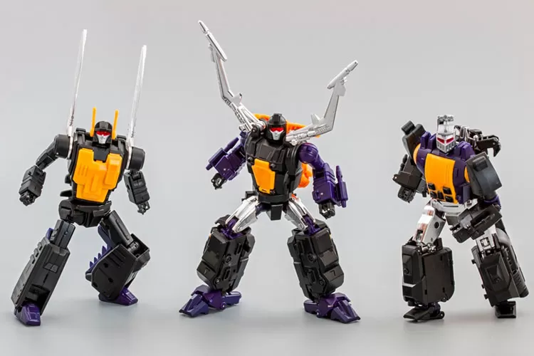 MMC’s R-26 Malum Malitia includes Calcitrant, Inflecto and Potestas come as a boxset under MMC’s Reformatted line. All 3 figures will have die cast parts and are highly articulated. Calcitrant and Potestas will also include additional faces. Figures stand 14CM/5.6″ tall and are approximately masterpiece scaled based on the animated series proportions.