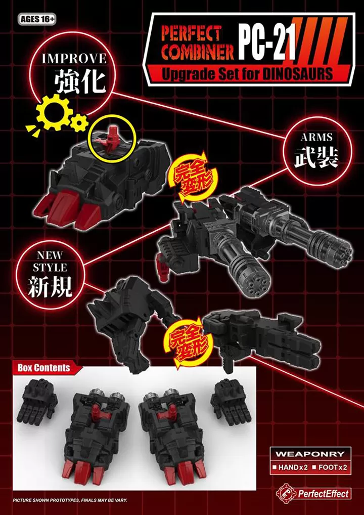 PC-21 Perfect Combiner POTP Dinobots Volcanicus add on set from Perfect Effect includes everything needed to upgrade your Power of the Primes Volcanicus Dinobots Combiner Set! figures sold separately.